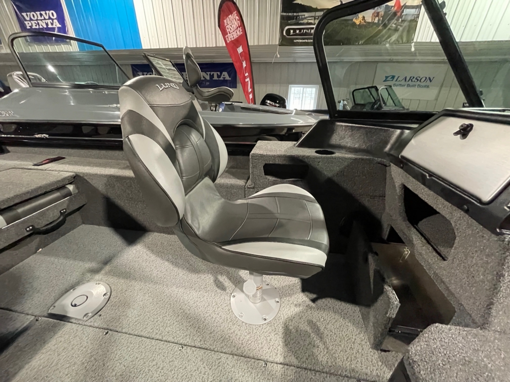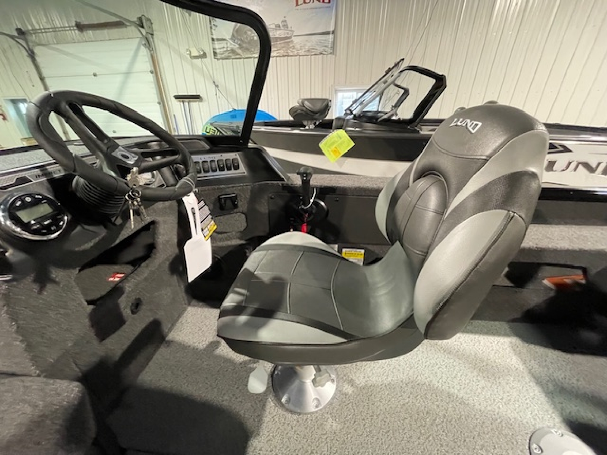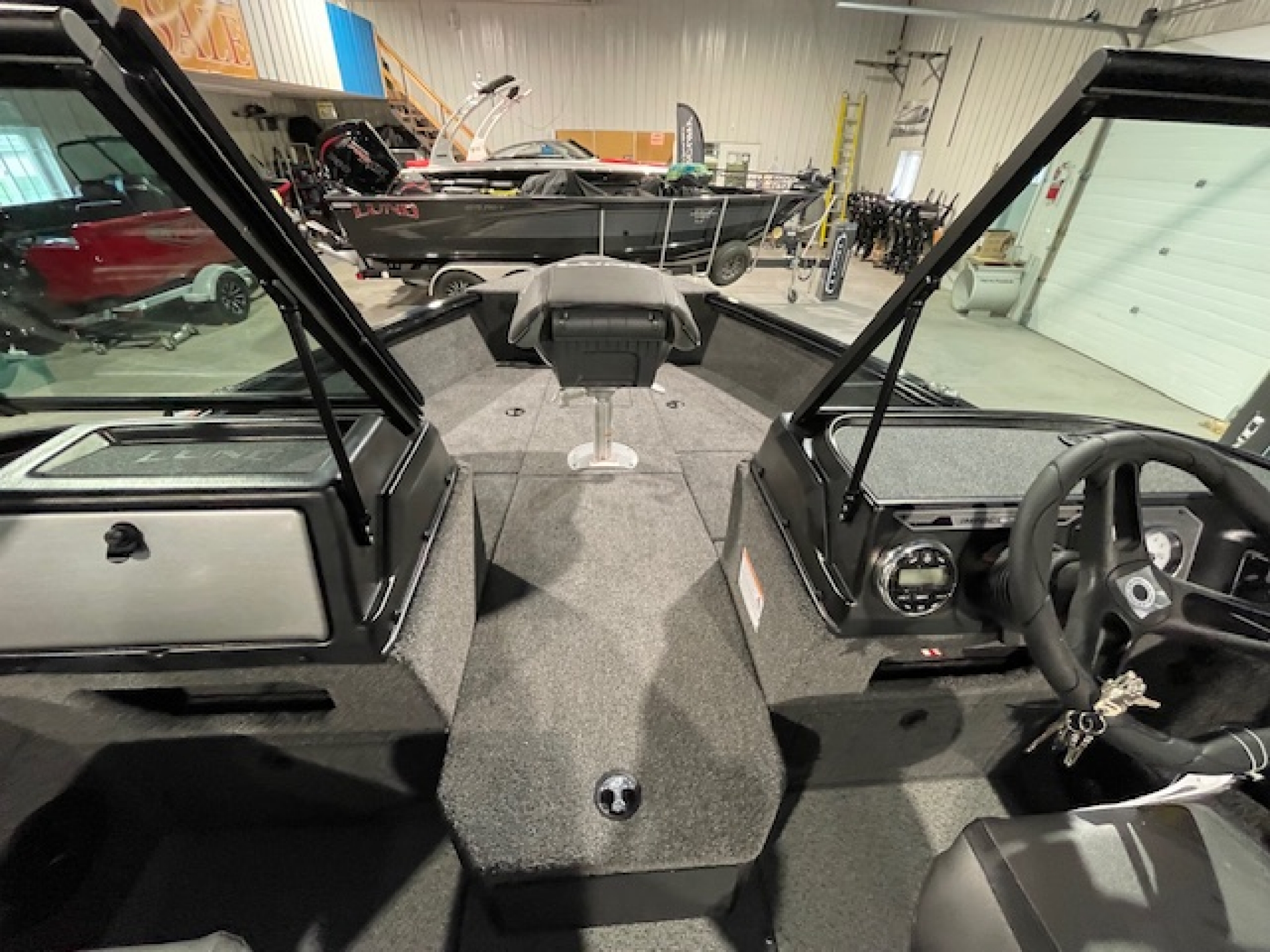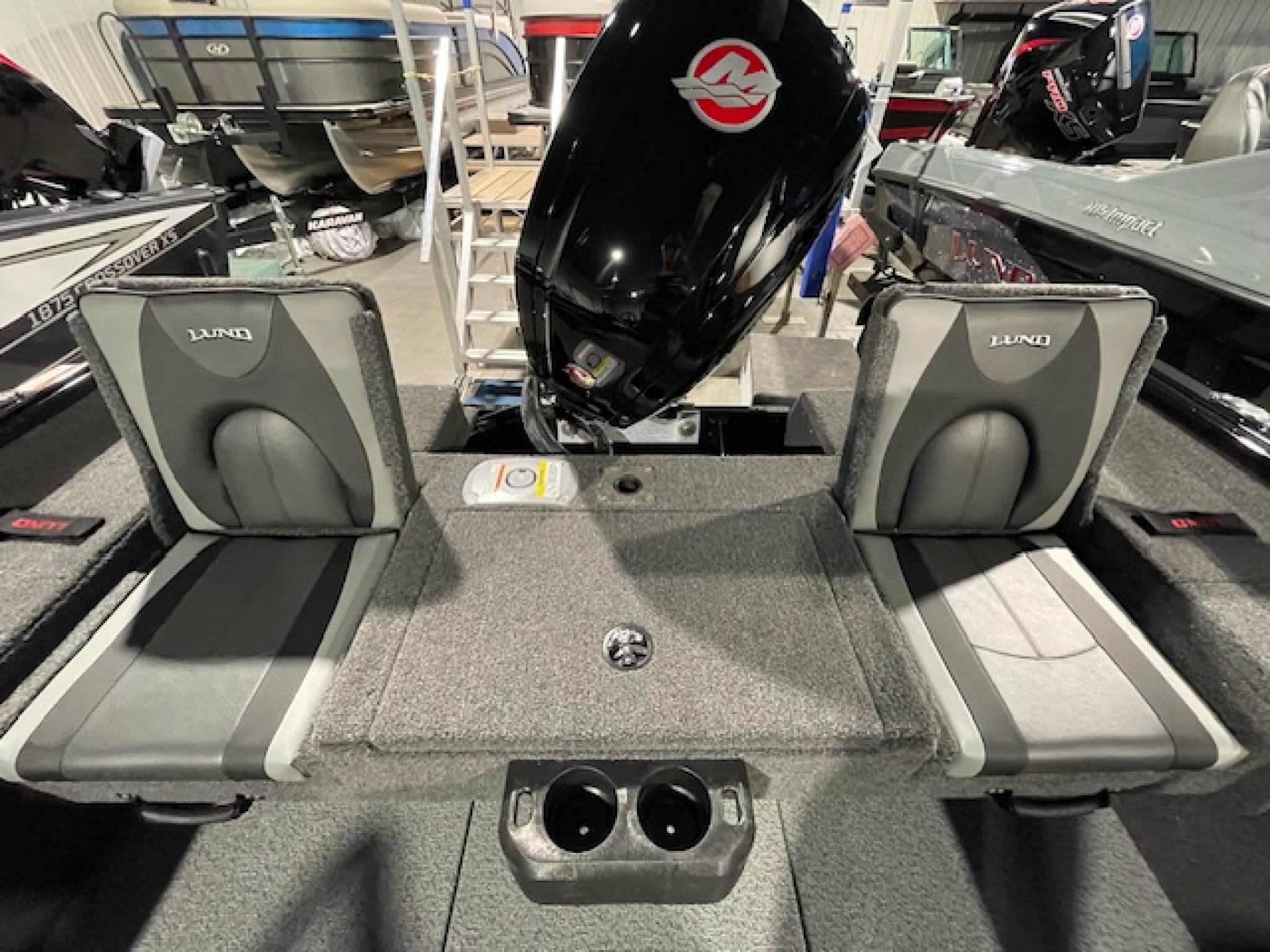 The 1775 Lund Impact XS sports a full windshield to comfortably protect the entire family. The family fishing boat features include a center rod locker, two livewells, large casting decks and even a ski pylon option for family fun. There's even a boarding ladder and rear flip seats to accommodate the entire family and friends.